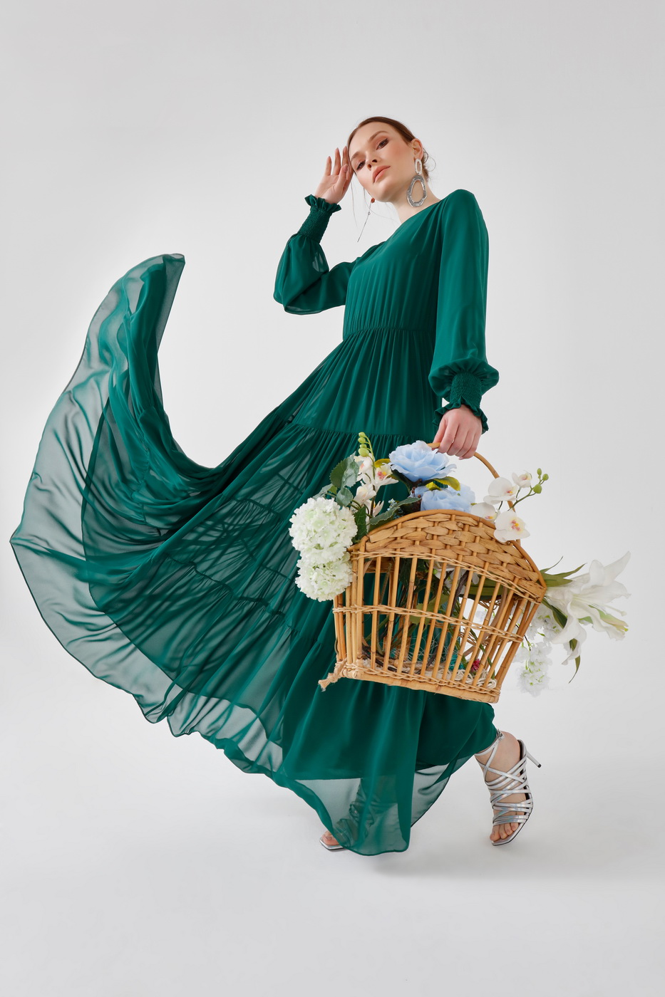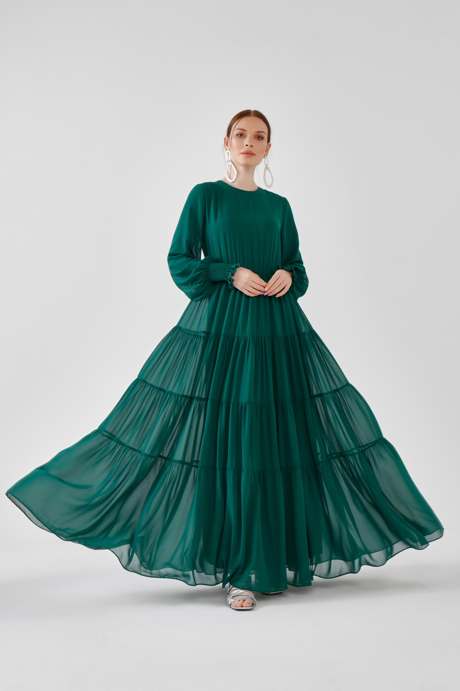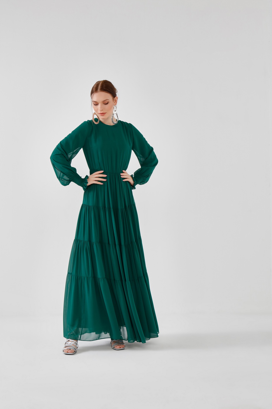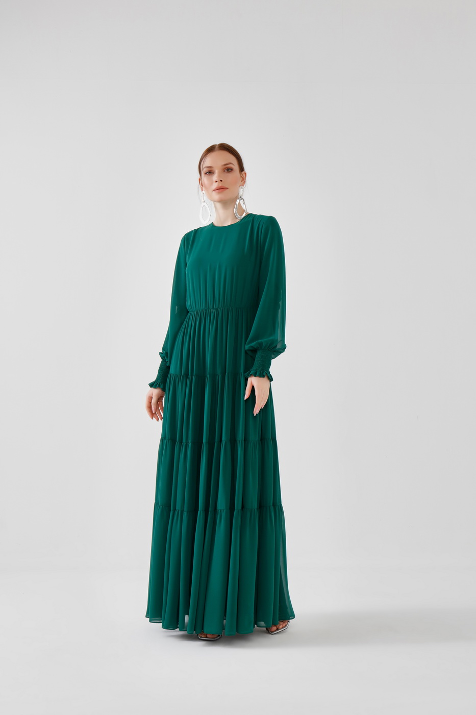Fırfırlı elbise yeşil