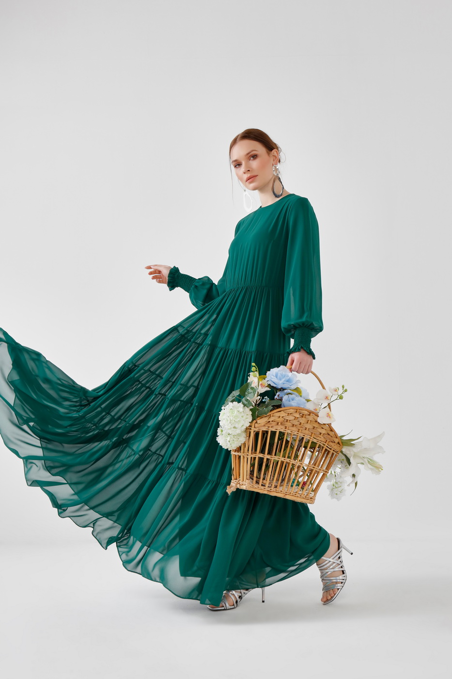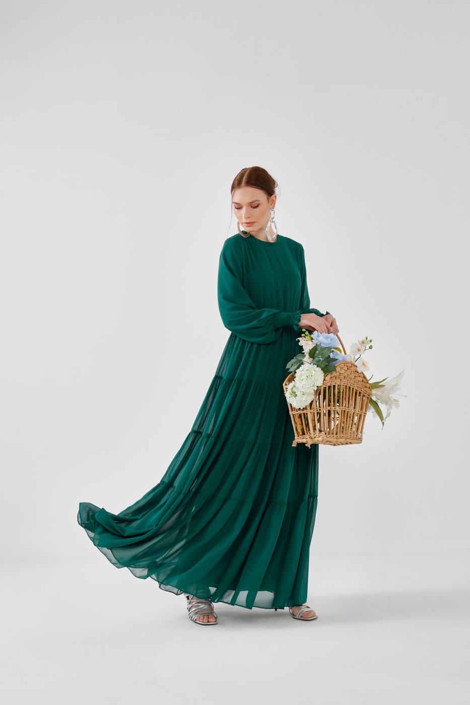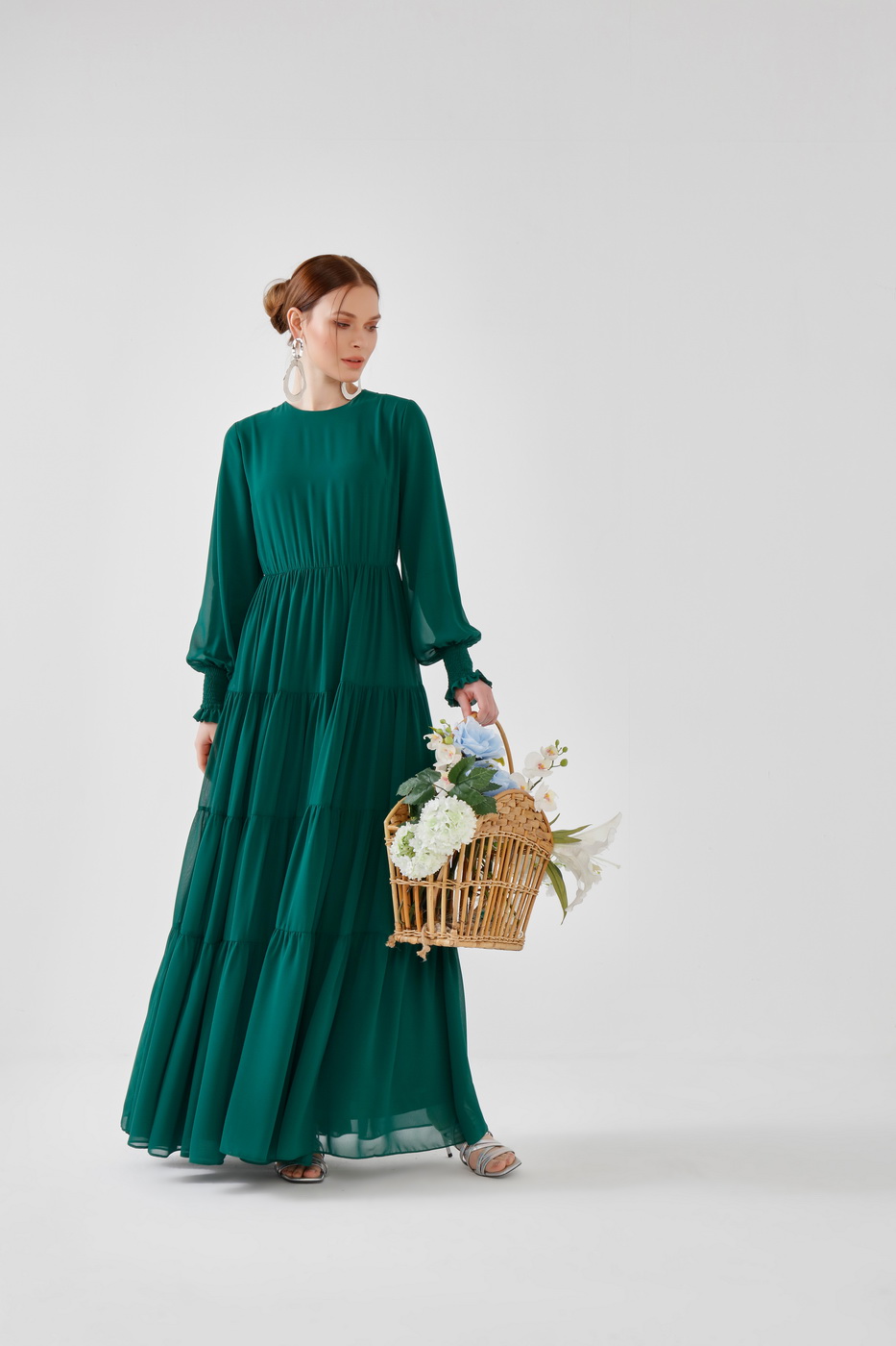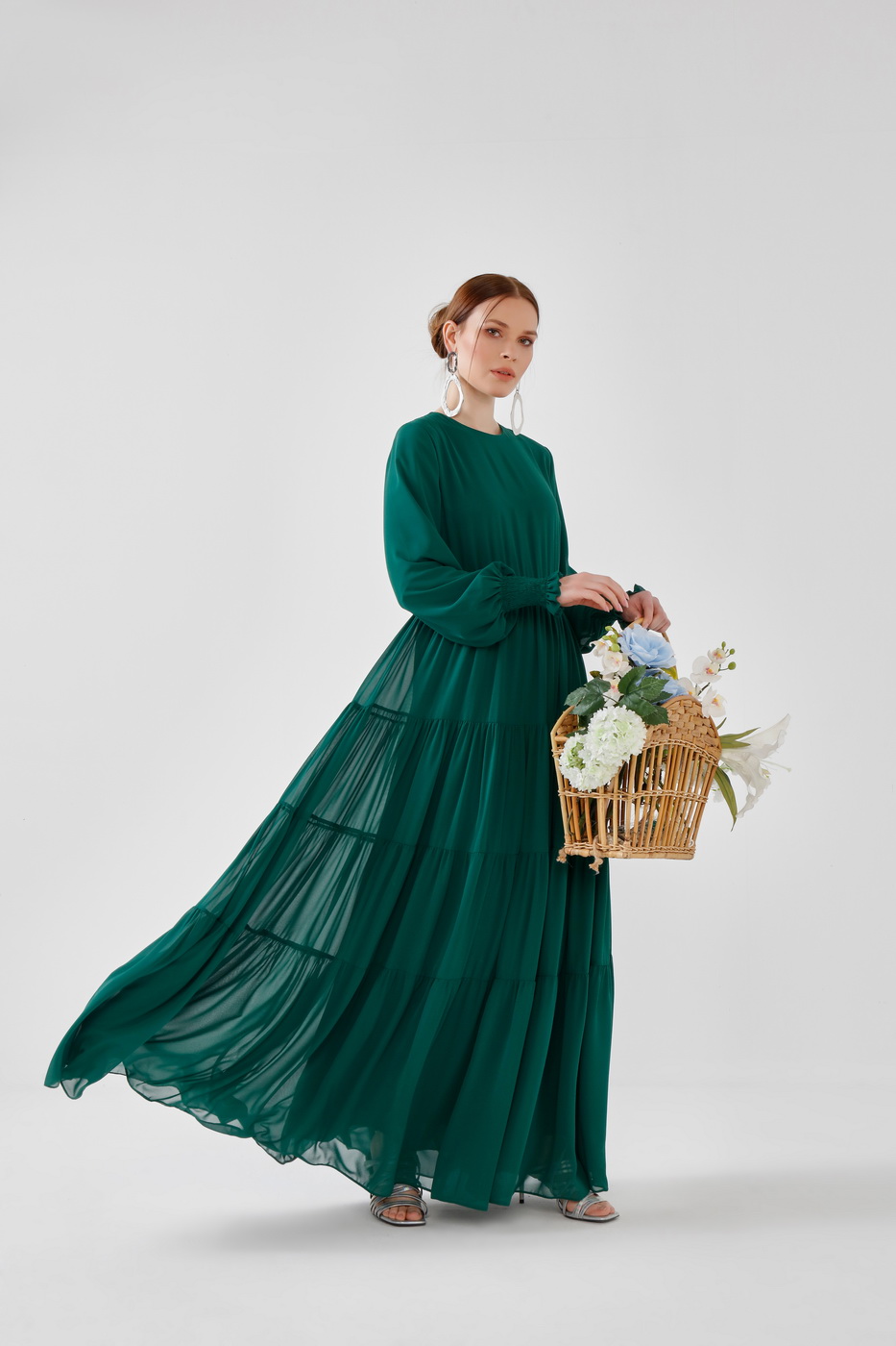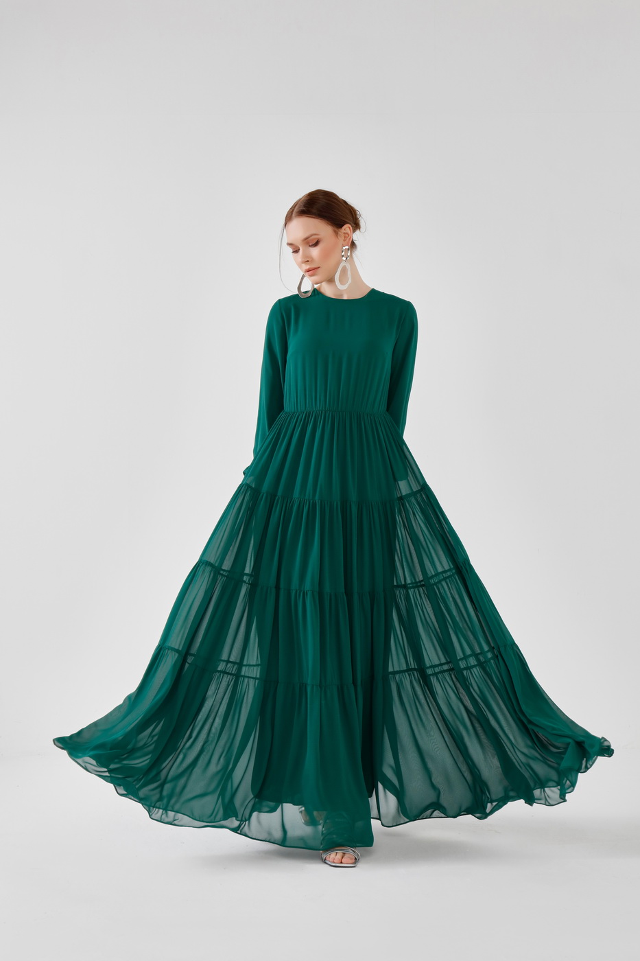 Fırfırlı elbise yeşil
