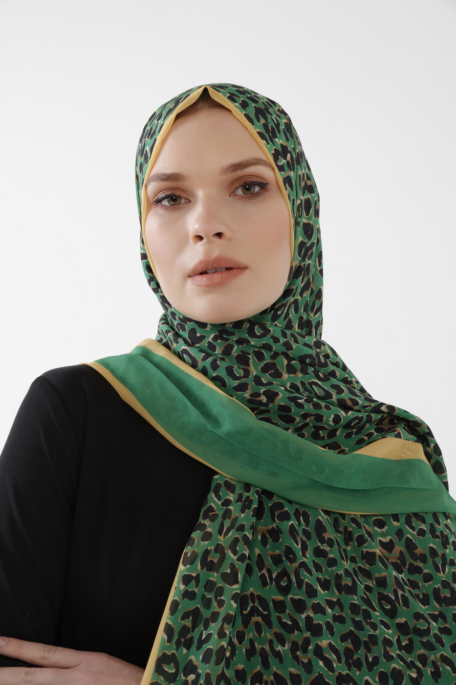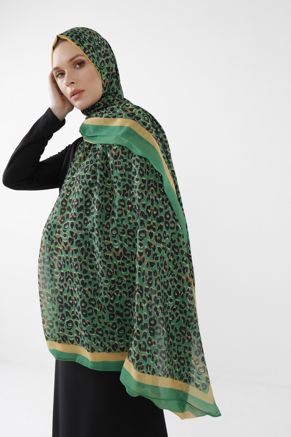 Leopar yeşil şal