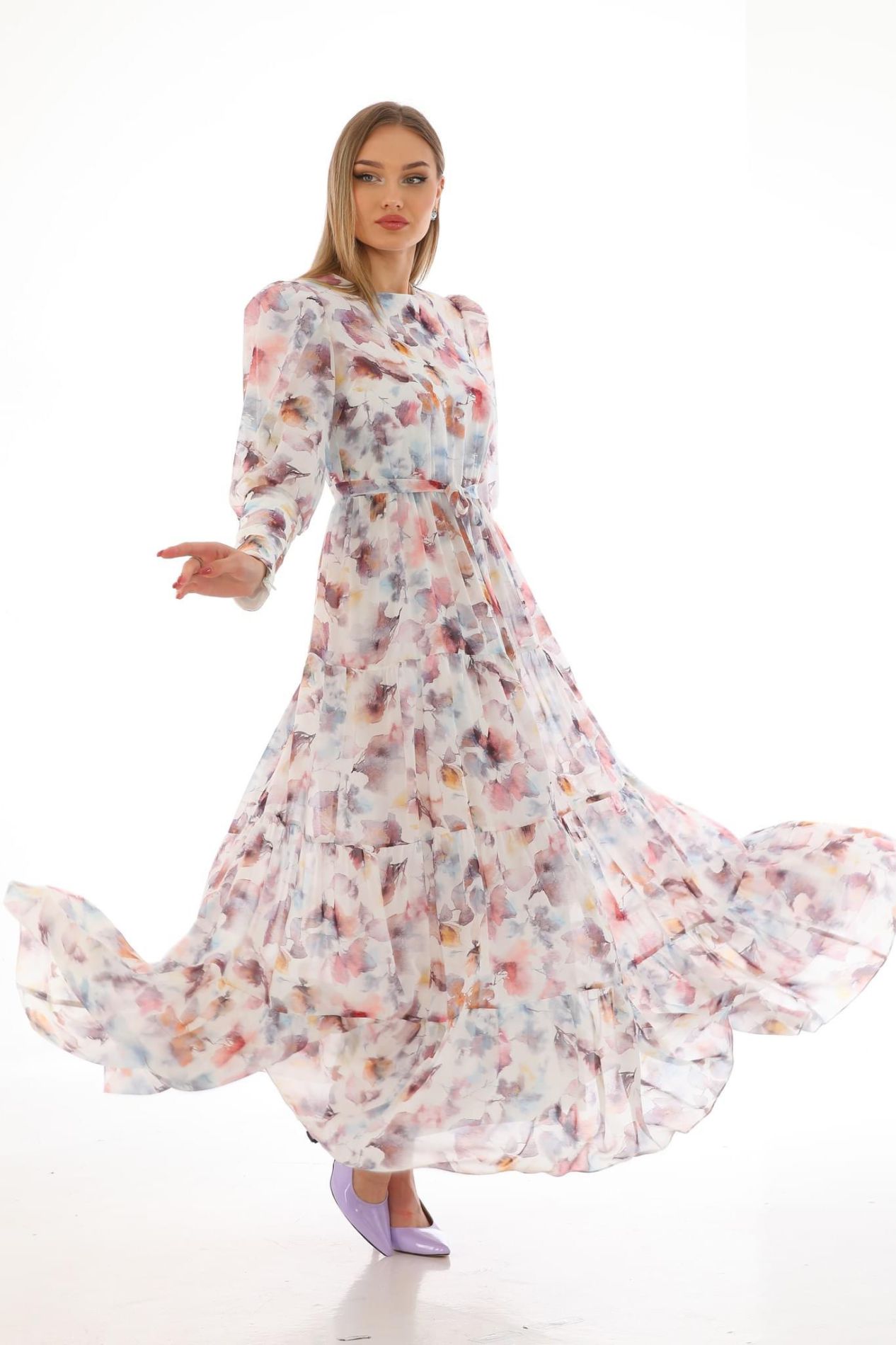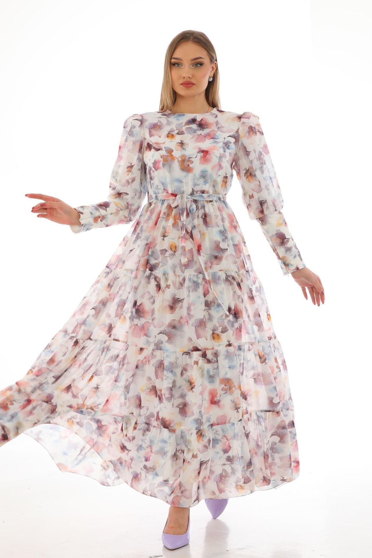 Orkide desen şifon elbise